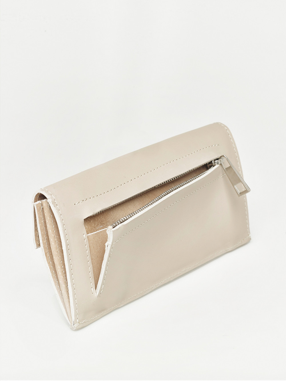 Kétrészes belső terében hat kártyatartó, hátoldalán cipzáras zseb található.