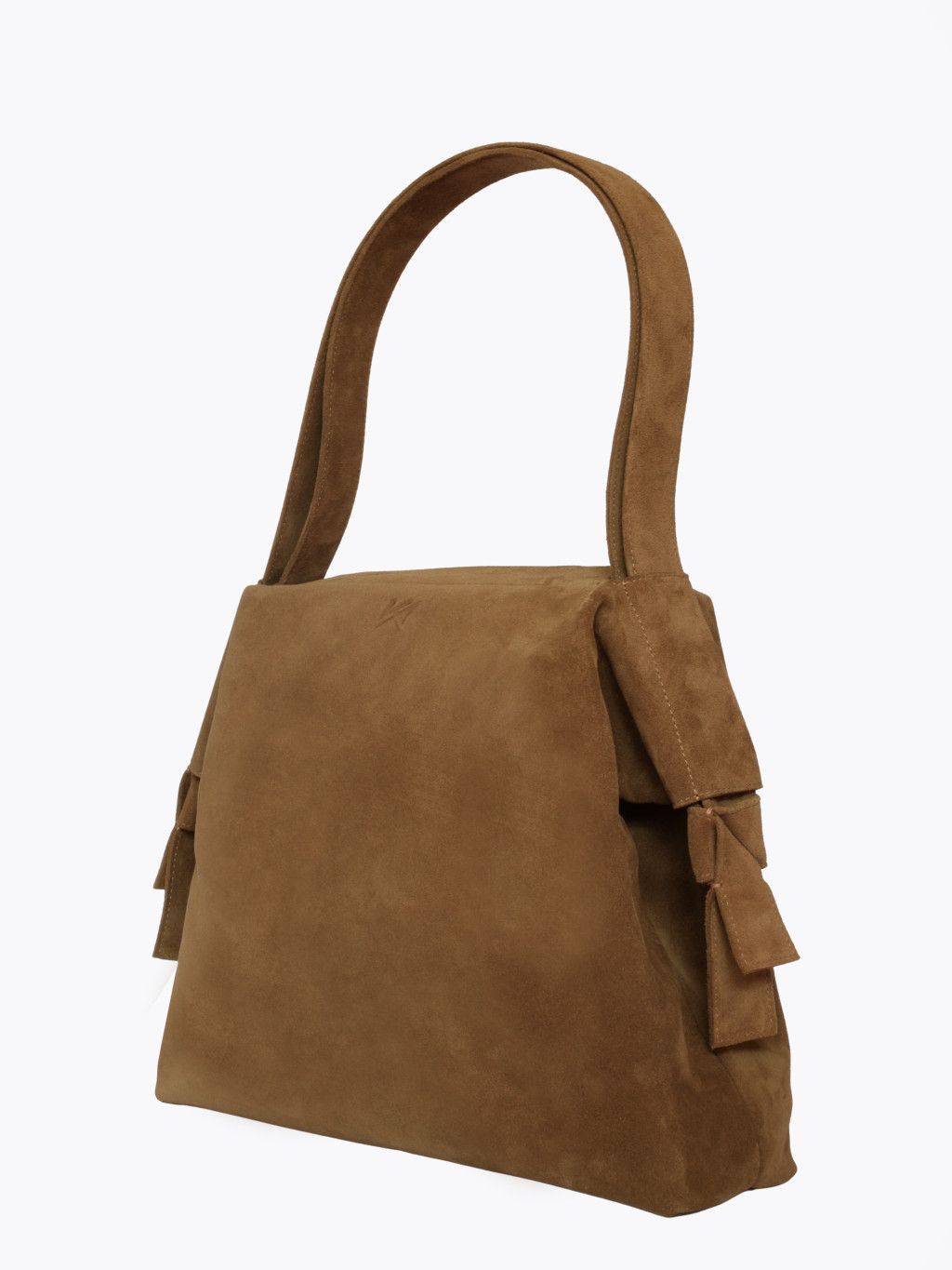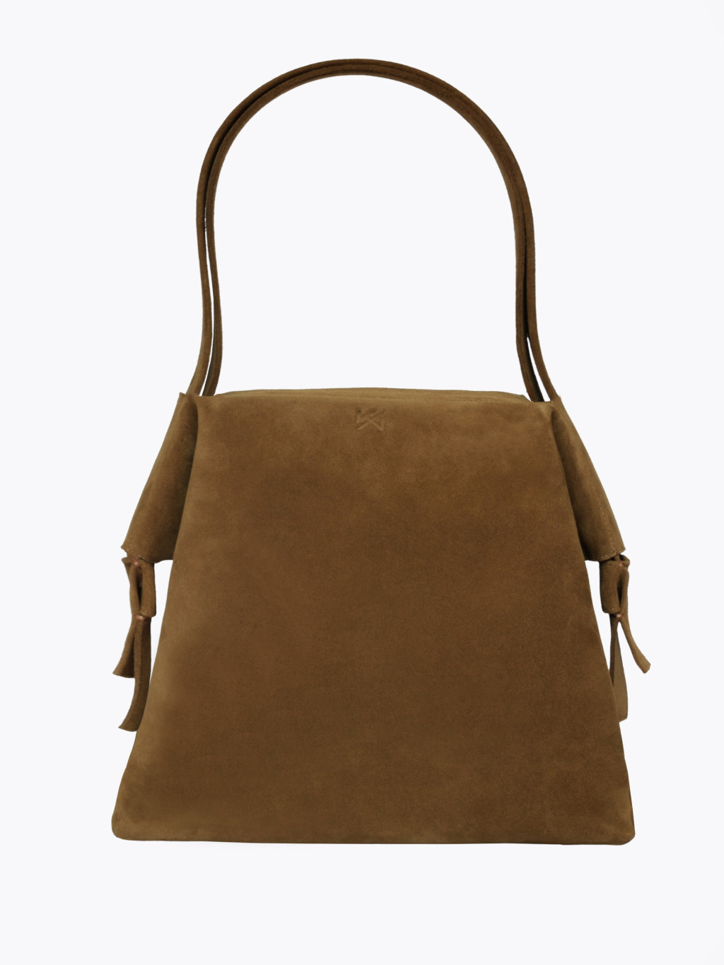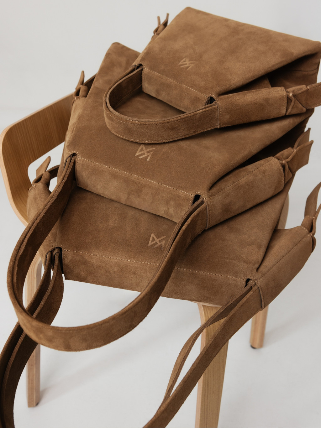 Egyetlen egybefüggő velúr bőrlapból metszett PASSAGE válltáska, a keretes táskából inspirálódva.