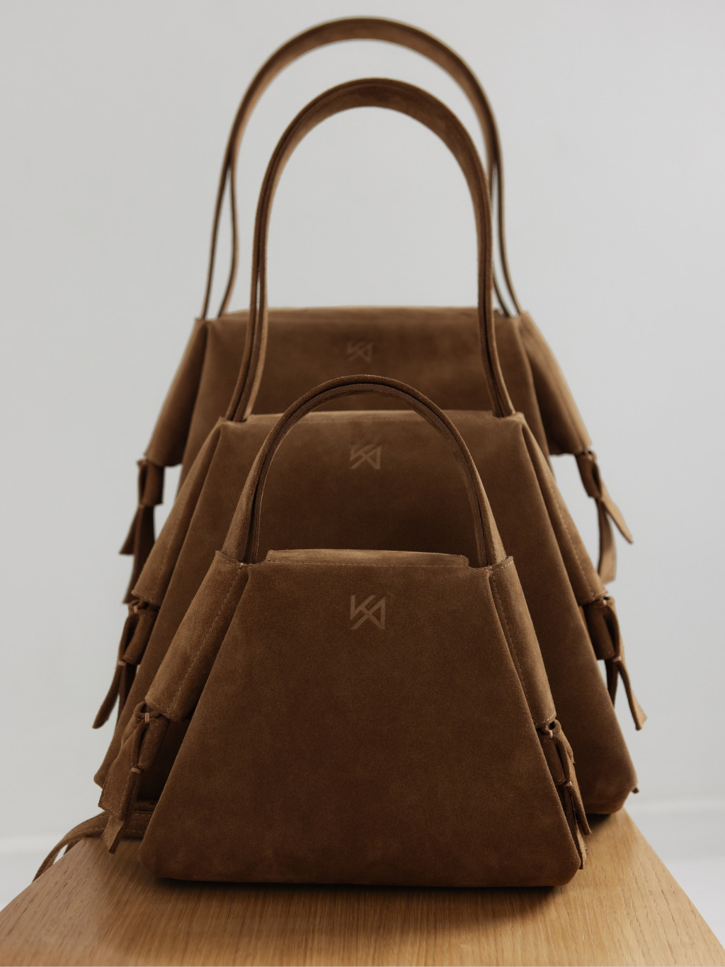 A formavilág kiindulópontja a keretes táska. A klasszikust újragondoló dizájn jelentést hordoz: strukturált kerete tartást és stabilitást ad, miközben a belső tér a megújulás és az új tartalmak lehetőségét hordozza.